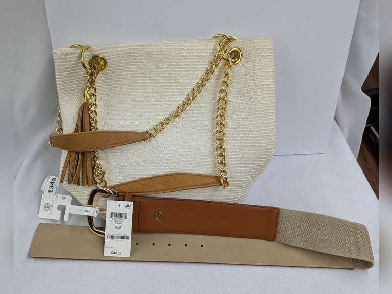 LOT 1343 - GB Woven Purse with Chain Straps & Cognac Belt S/M